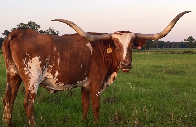 She is a gentle, tall, large framed daughter out of the original Day's Feisty Fannie cow, one of the largest TTT cows in the industry. Twisty horn genetics run deep in her pedigree. She produced two nice embryo calves out of Cowboy Tuff Chex, Double T Longhorns is using the bull calf as their herd sire and we have retained the heifer as a replacement. Currently exposed to SW Tuff Hombre for 2018 spring calf.